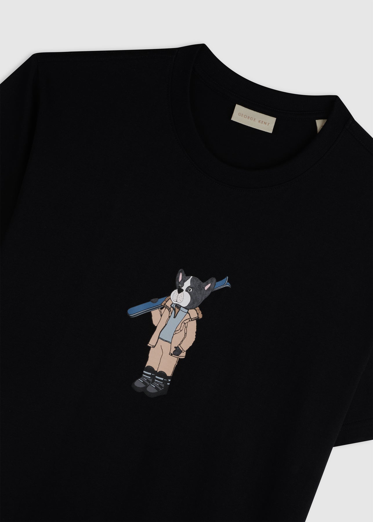 The Skiing at Aspen Tee is crafted from premium Pima cotton jersey with a classic crew-neck fit. It features a front illustration of Georgie in an alpine-inspired scene, translated through a refined graphic artwork. A sport-luxury essential that brings seasonal character to everyday style with subtle sophistication.